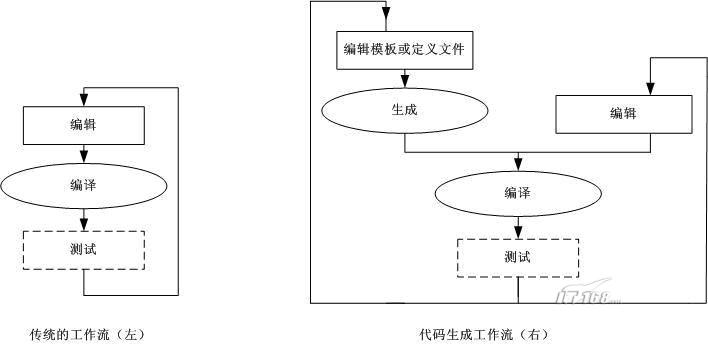 图1 传统工作流与代码生成工作流的对比
