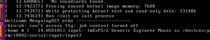 #!/bin/sh mount -t proc none /proc mount -t sysfs none /sys echo "Wellcome MengningOS!" echo "--------------------" cd home /bin/sh