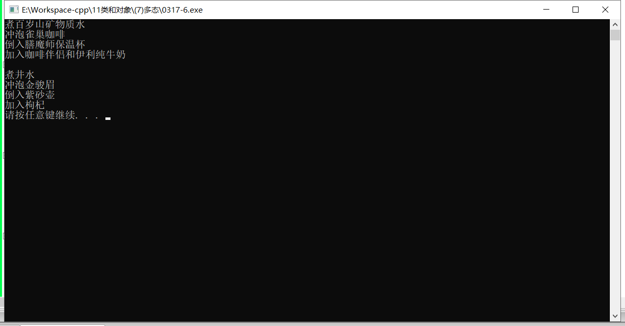 do_work(new Coffee); // AbstractDrinking * abs = new Coffee 父类指针指向子类对象(动态多态的使用条件)