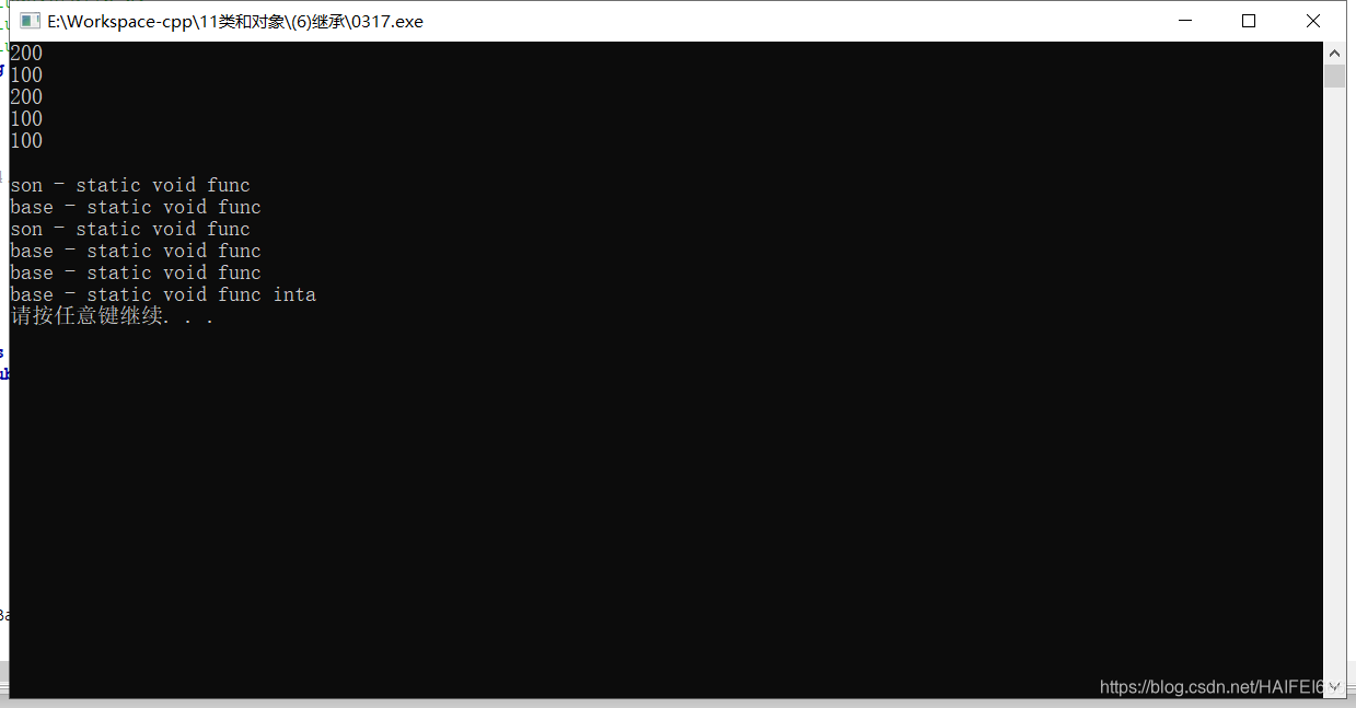 cout << Son::Base::a << endl; // 通过子类访问父类静态成员