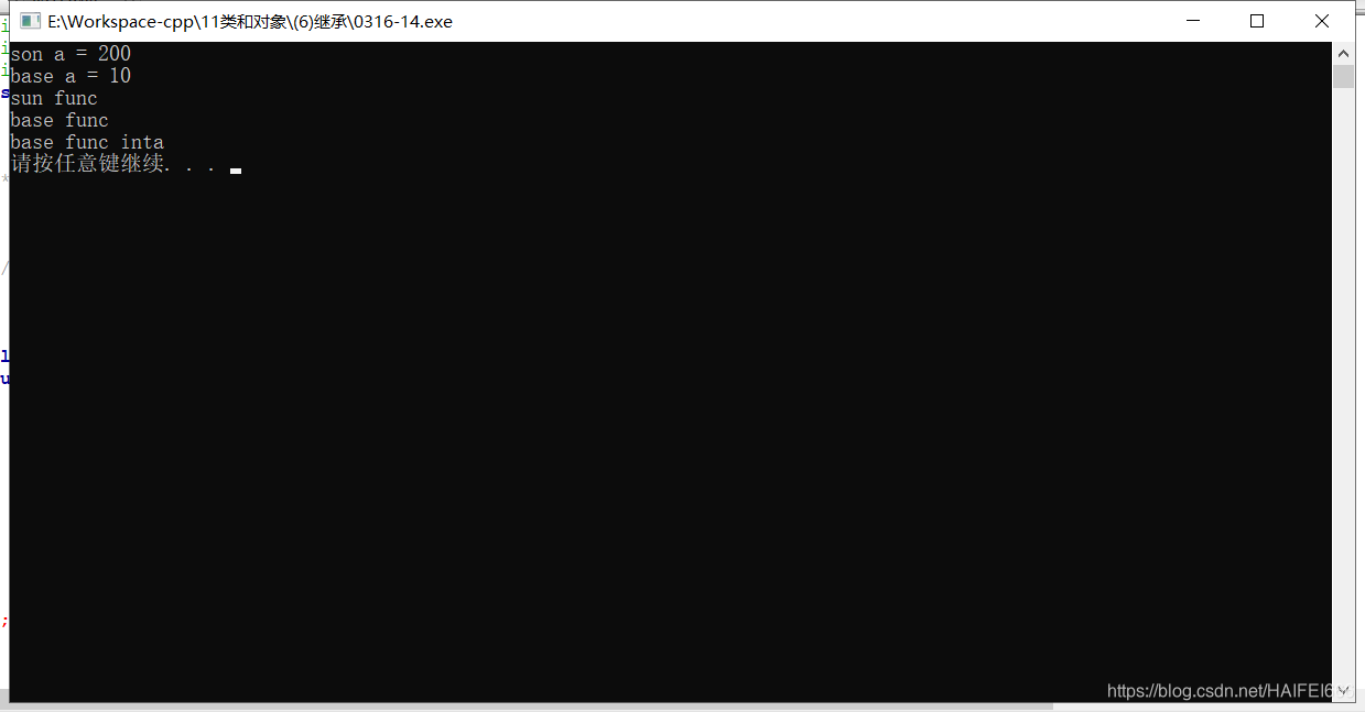 // 若子类想访问父类中被隐藏的同名成员函数,需要加作用域