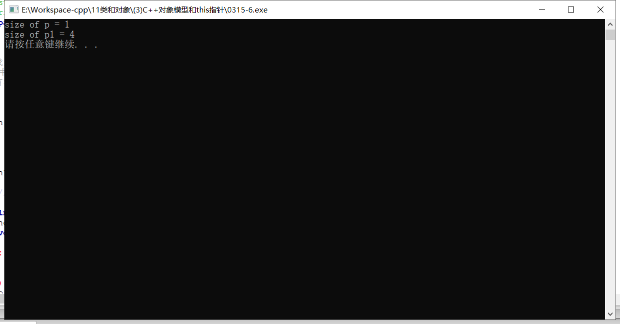 // c++编译器给每个空对象也分配1字节空间,原因是为了区分空对象占内存的位置