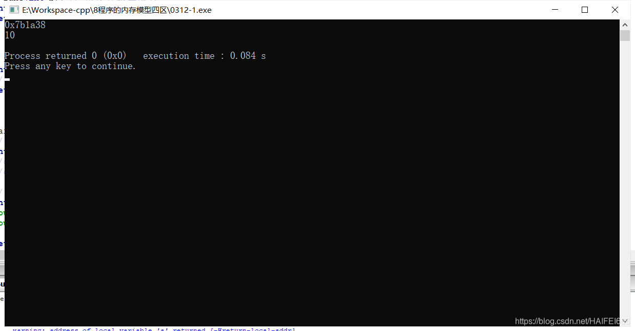 注意:不要返回局部变量的地址,栈区开辟的数据由编译器自动释放