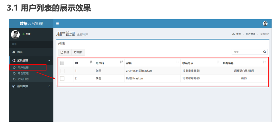 用户列表展示