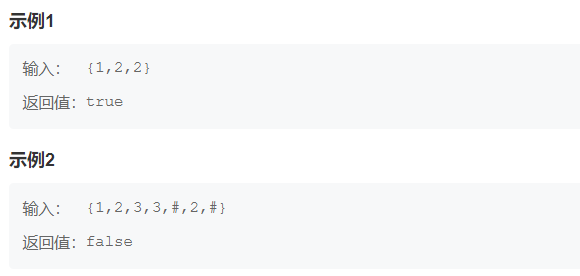 import java.util.*; public class Solution { public boolean isSymmetric (TreeNode root) { if (root == null){ return true; } return isSymmetricHelper(root.left, root.right); //从两个子节点开始判断 } public boolean isSymmetricHelper(TreeNode leftTree, TreeNode rightTree) { if (leftTree == null && rightTree == null){ //如果左右子节点都为空,说明当前节点是叶子节点,返回true return true; } if (leftTree == null || rightTree == null || leftTree.val != rightTree.val){ //如果当前节点只有一个子节点或者有两个子节点,但两个子节点的值不相同,直接返回false return false; } //然后左子节点的左子节点和右子节点的右子节点比较,左子节点的右子节点和右子节点的左子节点比较 return isSymmetricHelper(leftTree.left, rightTree.right) && isSymmetricHelper(leftTree.right, rightTree.left); } }