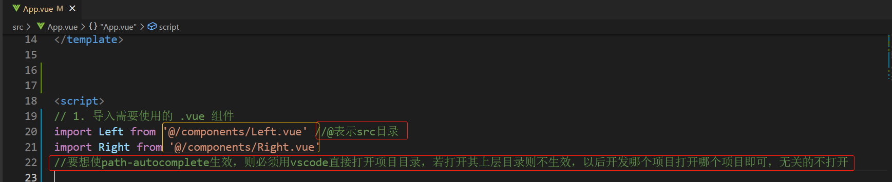 //导入文件时是否携带文件的扩展名 "path-autocomplete.extensionOnImport": true, //配置@的路径提示 "path-autocomplete.pathMappings": { "@": "${folder}/src" },