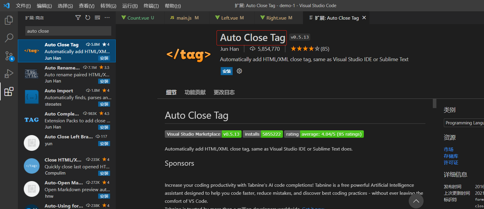 HMVue3.5.2【组件间的父子关系、使用组件的3个步骤、vscode中vue开发的一些插件】