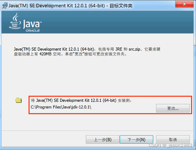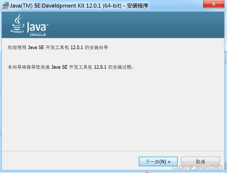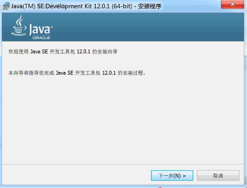 1、点击 “jdk-12.0.1_windows-x64_bin.exe”弹出安装向导页面,点击“下一步”;
