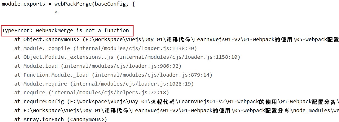 错误提示说webPackMerge不是一个函数。