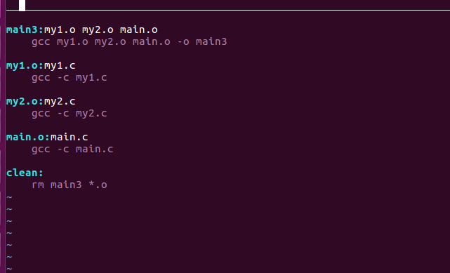 注意这里每个gcc以及最后的rm前面都是有一个tab