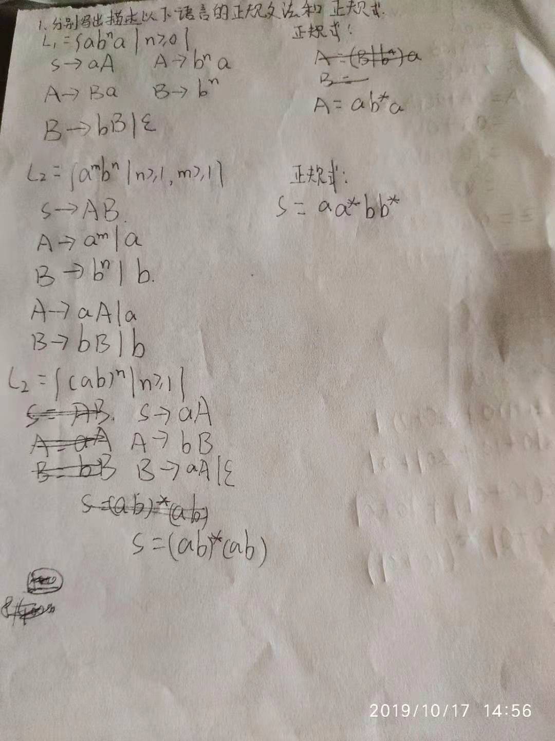 1.分别写出描述以下语言的正规文法和正规式:
