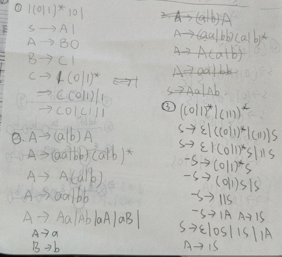 2.将形如A→a|b的规则,转换成A→a,A→b(A→a|b)