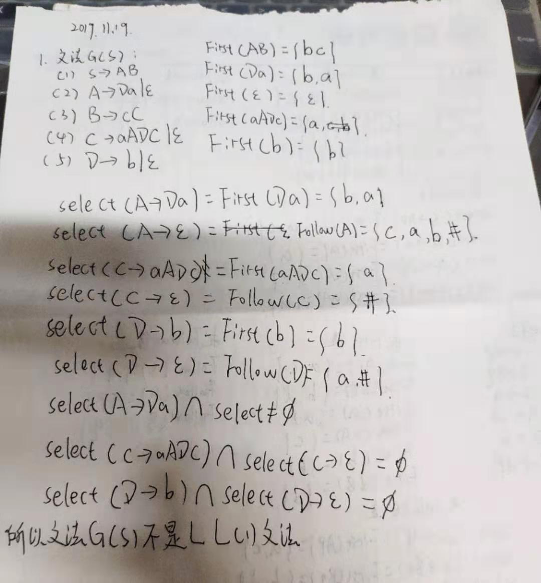 验证文法 G(S)是不是 LL(1)文法?