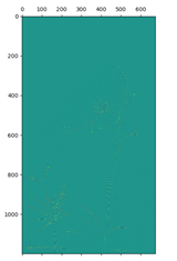 1 # -*- coding:utf-8/gbk -*- 2 # -*- coding:gbk -*- 3 from PIL import Image 4 import matplotlib.pyplot as plt 5 import numpy as np 6 import pylab 7 from scipy.signal import convolve2d 8 9 # 读取图片 10 Picture = Image.open(r'D:\GS\Robit_stu\data/p.jpg') 11 L = Picture.convert('L') 12 13 # 原图数组 14 p = np.array(Picture) 15 # 灰度图 16 pk = np.array(L) 17 18 # 垂直边缘进行扫描 19 x = np.array([[1, 0, -1], [1, 0, -1], [1, 0, -1]]) 20 # 水平扫描 21 y = np.array([[1, 1, 1], [0, 0, 0], [-1, -1, -1]]) 22 z = np.array([[-1, -1, -1], [-1, 8, -1], [-1, -1, -1]]) 23 24 x1 = convolve2d(pk, x, boundary='symm', mode='same') 25 y1= convolve2d(pk, y, boundary='symm', mode='same') 26 z1 = convolve2d(pk, z, boundary='symm', mode='same') 27 28 # 查看2d图 29 plt.matshow(x1) 30 plt.matshow(y1) 31 plt.matshow(z1) 32 plt.show()