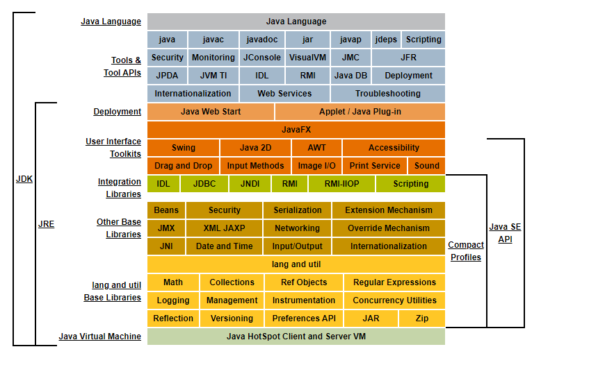 - JAVASE的基本架构:jdk,jre ,jvm 三者处于包含关系
