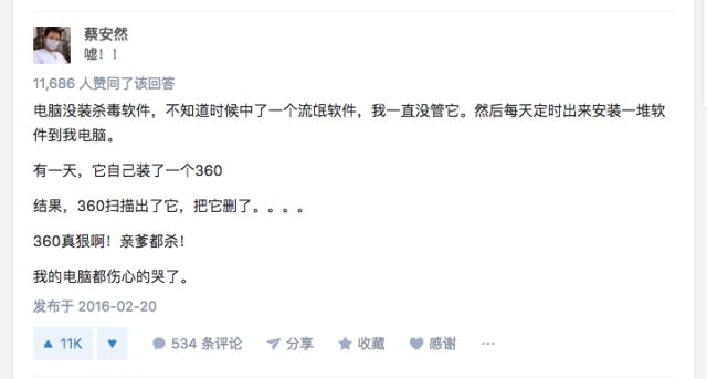 知乎有一个关注度破万的话题,叫“最流氓的软件可以流氓到什么程度?”,话题一出,大家纷纷历数自己使用过的体验感差、使用不流畅的软件,360全家桶、腾讯电脑管家、百度卫士等等一众软件榜上有名,有些网友还原了令人哭笑不得的软件使用场景: