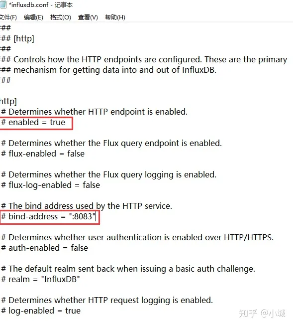 在 influxdb.conf 中修改如下一行,修改地址并且打开注释,修改后保存