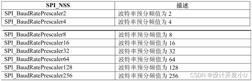 u16 SPI_BaudRatePrescaler; //定义波特率预分频的值
