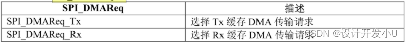 SPI_DMAReq :使能或者失能 SPI Tx 和/或 SPI Rx 的 DMA 传输请求