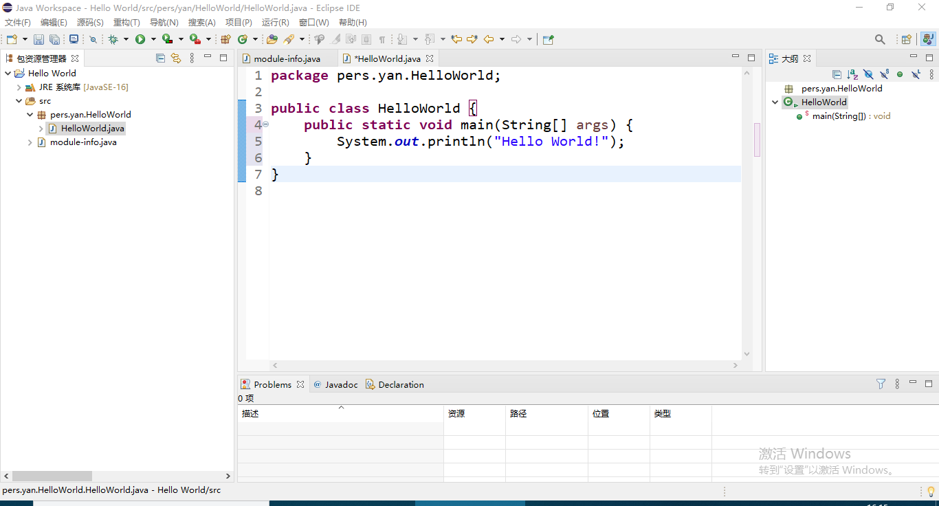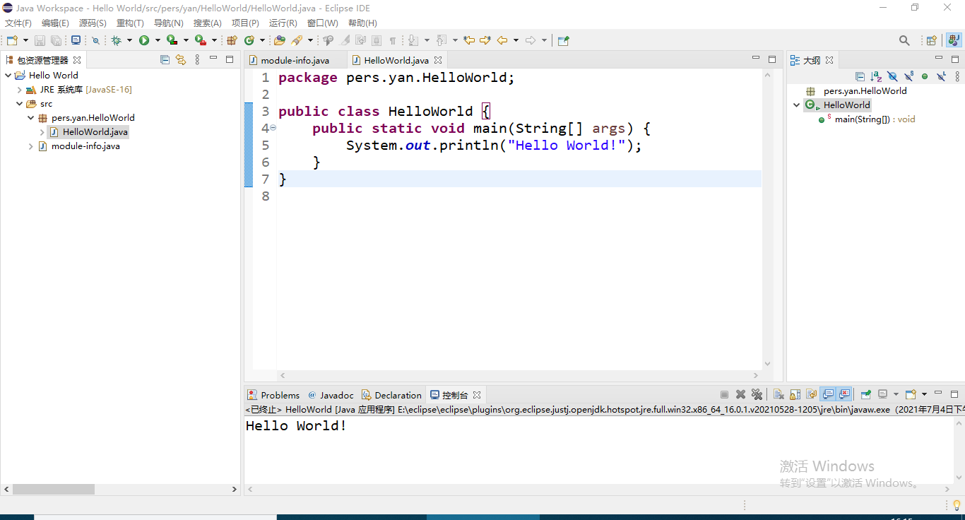 4.使用eclipse输出Hello World