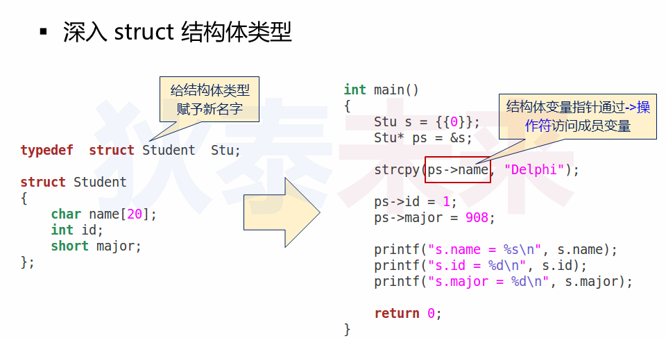 struct是C语言中的自定义类型关键字,定义不同数据类型变量的集合类型