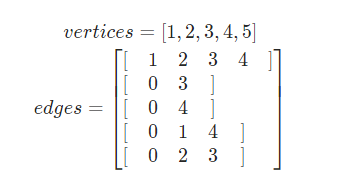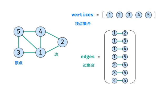 - 顶点集合:vertices = {1,2,3,4,5}