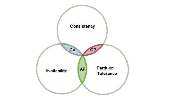 最多满足其中的两个特性。也就是下图所描述的。分布式系统要么满足CA,要么CP,要么AP。无法同时满足CAP。