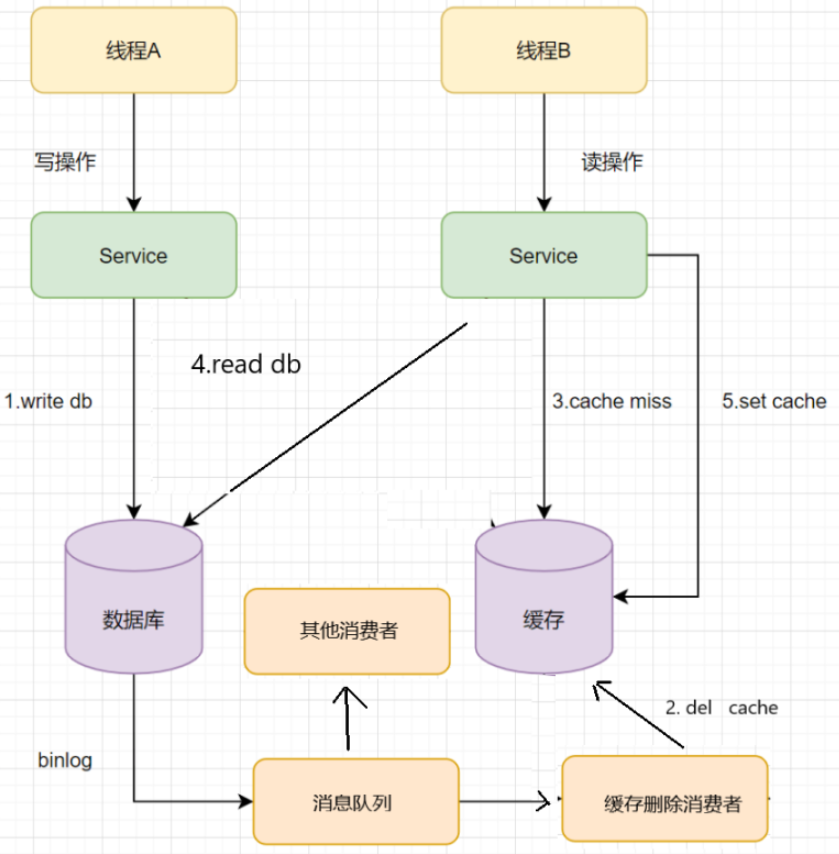 以MySQL为例,可以使用阿里的Canal将binlog日志采集发送到MQ队列里面,然后编写一个简单的缓存删除消息订阅binlog日志,根据更新log删除缓存,并且通过ACK机制确认处理这条更新log,保证数据缓存一致性。