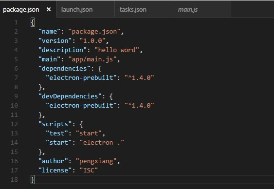 PS:安装之前,先复制一份package.json文件到./app目录下,然后改下./app目录下package.json里 “main”: “app/main.js”的路径(去掉app/),不这样子的话,下面打包的时候会报错,有的版本识别不了应用路径。