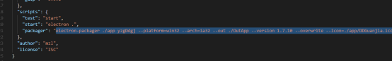 "packager": "electron-packager ./app yzgDdgj --platform=win32 --arch=ia32 --out ./OutApp --version 1.7.10 --overwrite --icon=./app/DDGuanjia.ico"