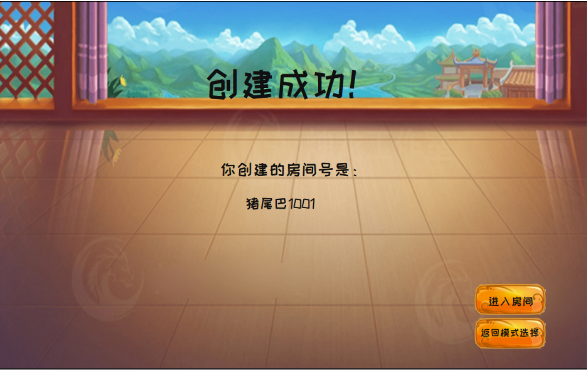 在线对战:在线对战的两个玩家在不同的设备上进行对战,玩家可以自己创建房间获得房间号uuid,或者获得uuid加入他人创建的房间。选择模式中有四个按钮进行选择,分别为创建房间,加入房间,创建AI对局和加入AI对局。点击创建房间后或创建AI对局后,出现等待玩家二加入的页面;点击加入房间或加入AI对局,弹出输入房间号的页面。
