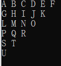 输出n行由大写字母A开始构成的三角形字符阵列。格式见输出样例,其中每个字母后面都有一个空格。