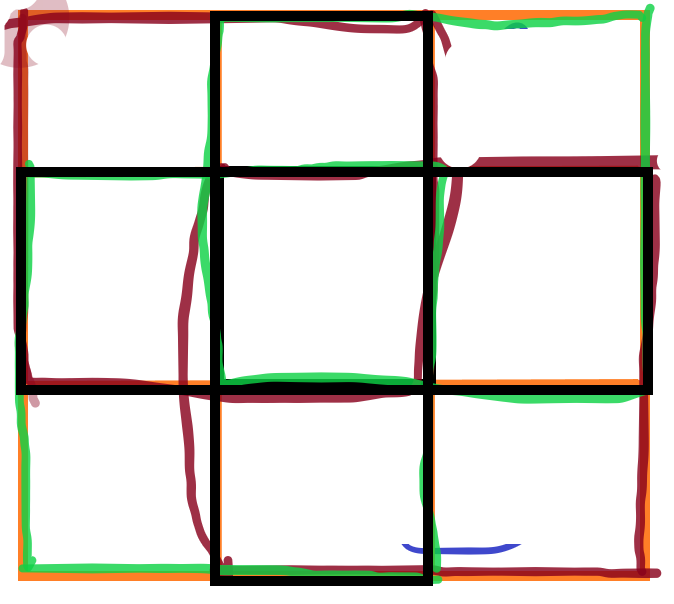 现在关注格点染k次色被染上的概率,一开始想计算第1次染上的概率+第2次染上的概率+……+第k次染上的概率,每次都不同,所以不是很实际(有不嫌麻烦的勇士这样做吗?让我膜拜一下。TLE的也可以