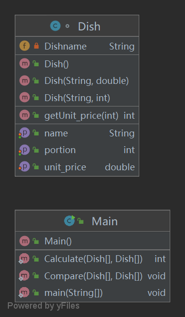 第一次的菜单计价较为简单,只要创建一个dish类,在根据题目要求创建变量及相应的构造方法,方法,对象的构造及使用即可,通过Calculate方法计算出总价,通过Compare方法判断订单中的菜是否存在于菜单中;通过第一次的菜单计价学会了类的创建,能够较为熟练的通过编译器书写构造方法及方法。