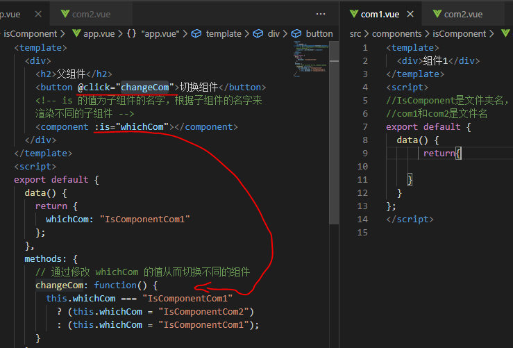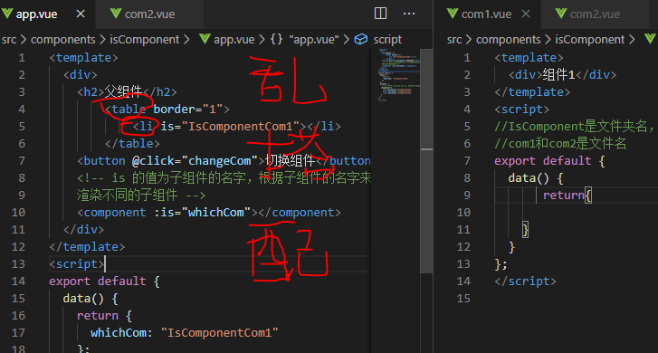 动态组件,在一个页面里面动态的切换组件,可以使用component标签上is特性,可以在父组件里动态的切换不同组件