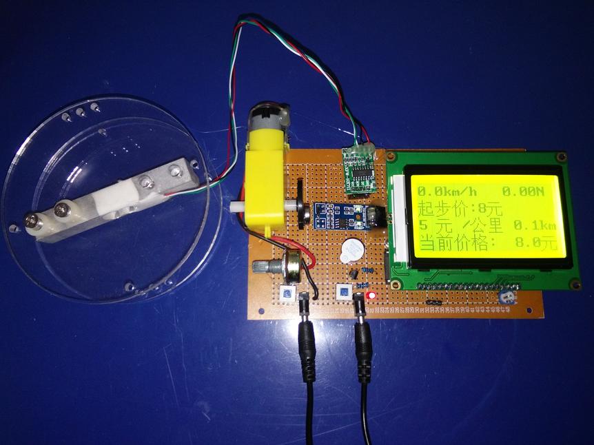 1、通过液晶12864实时显示压力、车速、路程。起步价8元,5元/公里,实际车费。