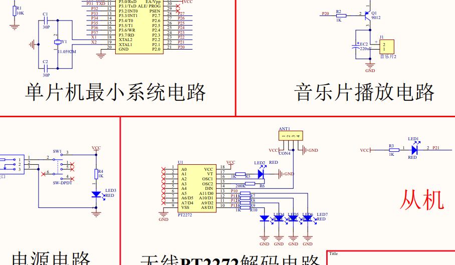 1、通过从机的4个按键可以控制音乐片的播放、停止以及LED灯的亮、灭。