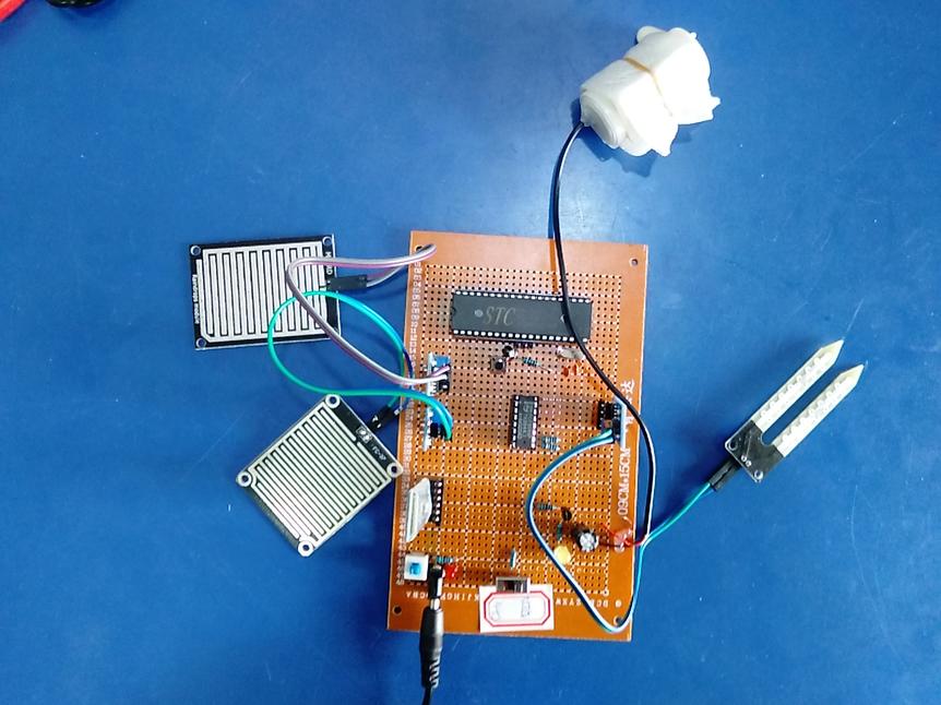5、自动模式:当土壤湿度低于阈值,则水泵浇水,否则,水泵不浇水。