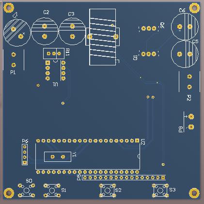 本开关电源设计采用STC12C5A60S2单片机发生47KHZ的PWM脉冲信号,经过IR2104控制MOS,从而控制整个BUCK(降压式变换)电路。单片机内部自带的10位ADC能通过电压电流检测电流实时反馈电流和电压数值,并由此调整输出的PWM的占空比,形成电流电压闭环控制系统。按键能设置输出电流从0.2A到2A,以0.01A递增,输出最大10V,液晶能显示实时输出电流与电压。