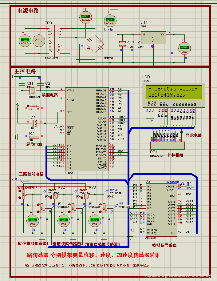 基于单片机的航空发动机振动测量系统的设计-毕设课设protues仿真