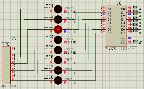 为了证明单片机的复位电路正常,该实验中还设置了流水灯,这是一个8位LED灯轮流点亮的装置,当复位按键被按下后,流水灯就被复位,它会从第一盏灯亮起,但数码管的读数不受影响。流水灯的效果如图4-6所示: