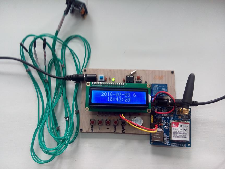 本设计以STC89C52单片机位主控,可实现显示万年历,支持掉电保护按键可调;可设置定时报警,时间到,如果有人接近,蜂鸣器报警,继电器吸和,通过GSM向户主发送短信报警,可手动关闭报警装置。