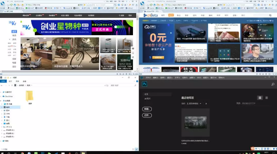 3、 Win+←/→ 自动分屏。Win 键配合 ←/→ 方向键分屏默认是左右二分屏,想要在两分屏基础上继续获得三、四分屏,可以按 Win+↑/↓ 快捷键来实现。