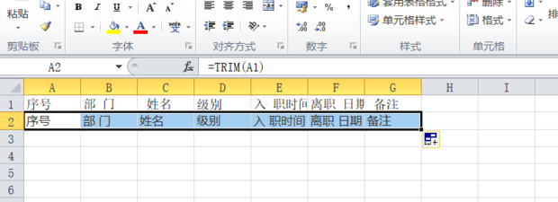 在表A2中输入函数“=TRIM(A1)”,点击确定