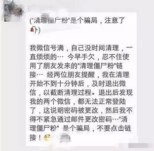 近期你可能会经常收到“免费帮你清理微信僵尸粉”的信息,或是“我在清理微信好友,一清吓一跳”的朋友圈吐槽。很多人点开了信息中的附带链接,按照对方说的步骤清理僵尸粉,结果可能会出现微信号被盗、好友信息被窃取,甚至手机会中木马病毒等严重后果。
