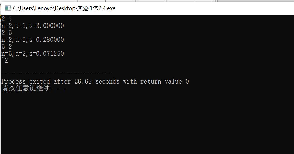 printf("n=%d,a=%d,s=%1f\n",n,a,s);