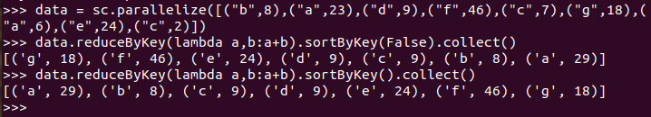 reduceByKey : 对元素为KV对的RDD中Key相同的元素的Value进行binary_function的reduce操作,因此,Key相同的多个元素的值被reduce为一个值,然后与原RDD中的Key组成一个新的KV对。