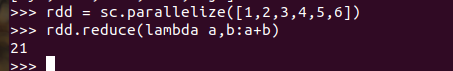 reduce : reduce将RDD中元素前两个传给输入函数,产生一个新的return值,新产生的return值与RDD中下一个元素(第三个元素)组成两个元素,再被传给输入函数,直到最后只有一个值为止。