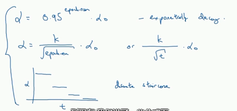 其他可以用来做学习率衰减的公式:第三种是离散下降
