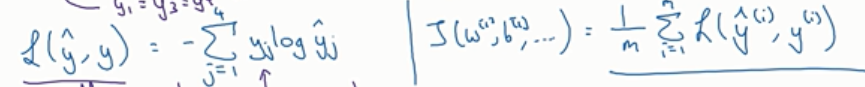 注意在这种神经网络里面的y是(c,m),其中的c是种类的个数,m是样本数,输出yhat是(c,m)